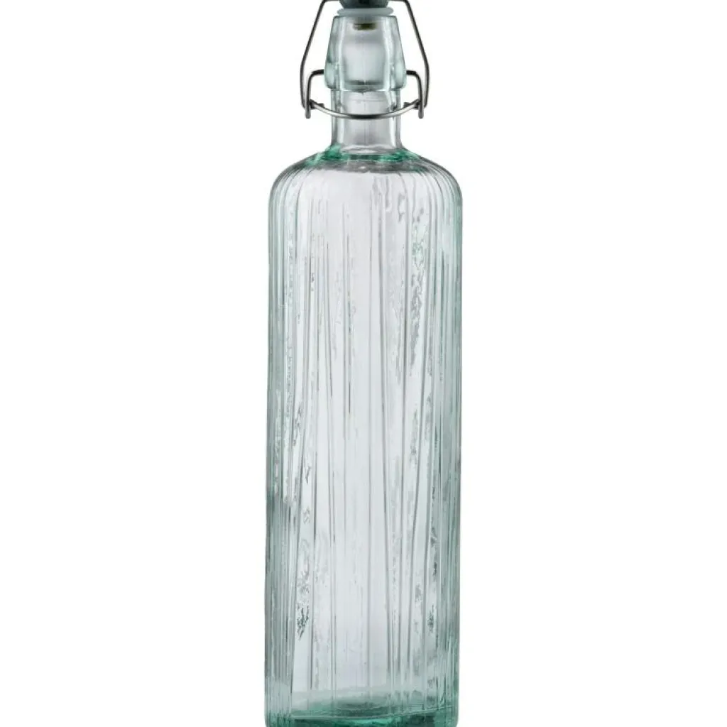 – Tillverkad av återvunnet glas.