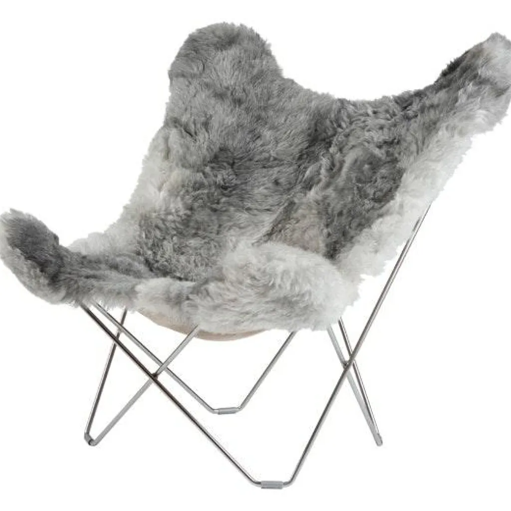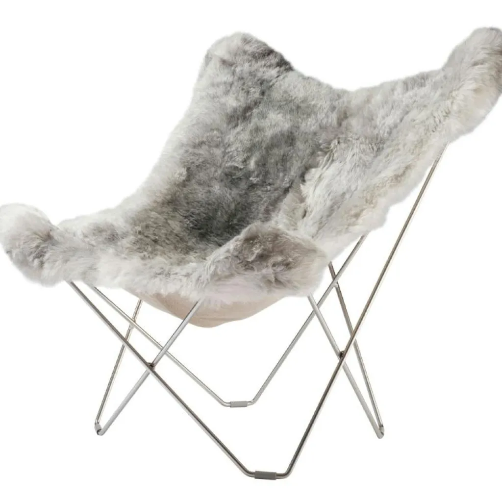 Iceland Mariposa Butterfly Chair är en riktig klassiker i ny tappning i både modell och material. Den är mycket större än originalet vilket gör den ännu skönare att sitta i. Lammskinnet kommer från Island och väljs ut mycket noggrant. Bara ett på hundra får föds naturligt grå på Island och det är därför mycket exklusivt. Den tillverkas i Småland med stor hantverksskicklighet och miljötänk. Underredet är gjort av massivt svenskt extra hårt stål. Eftersom lammskinnet är ett naturmaterial får varje stol ett unikt utséende och om du tar hand om den kommer stolen att hålla i generationer tack vare den underbara kvaliteten. Denna designikon används flitigt på kontor, hotell, konstutställningar, inredningstidningar och i privata hem förstås. Lammskinnet finns i flera olika färger, korthårigt (Shorn) eller långhårigt (Wild) skinn och med svart eller kromat underrede. I samma modell finns också Pampa Mariposa som är klädd med italienskt högkvalitativt läder. Till dessa fåtöljer finns även en pall i flera olika utföranden.