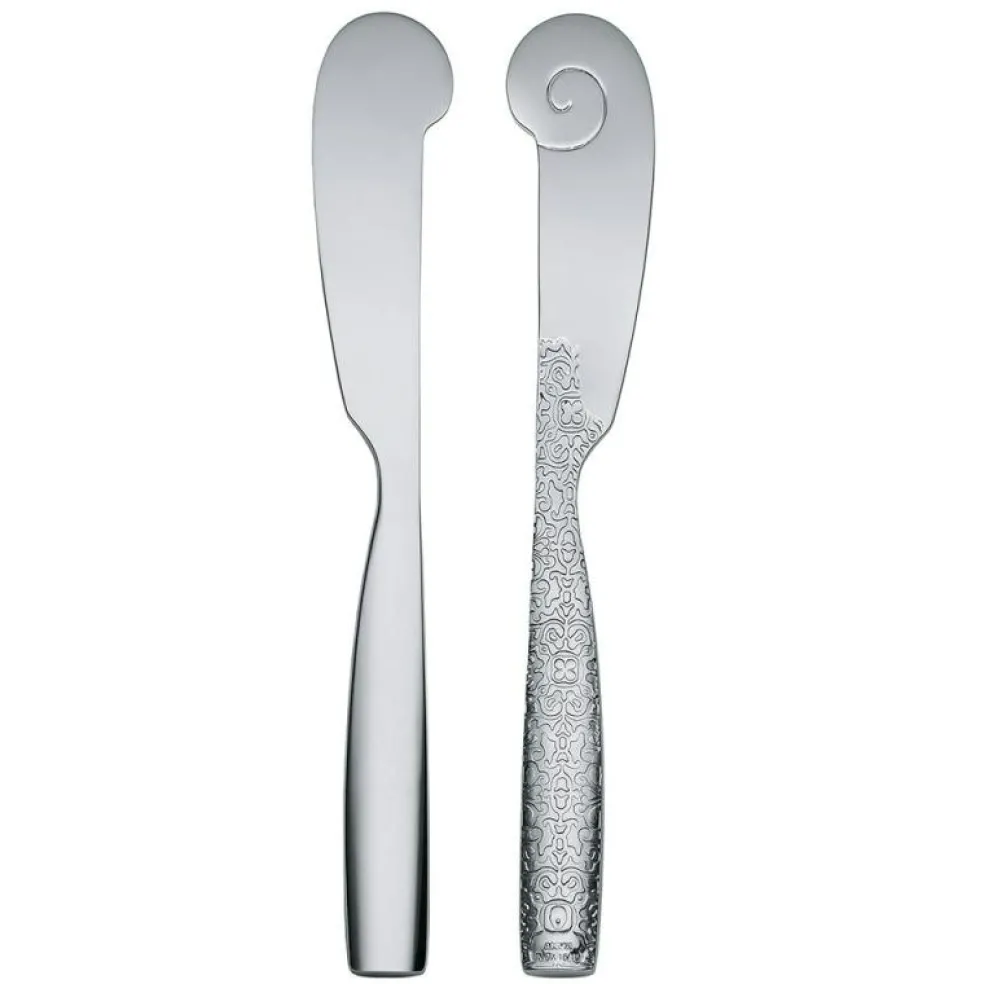 Dekorativ smörkniv i blankpolerat rostfritt stål från Alessi.
