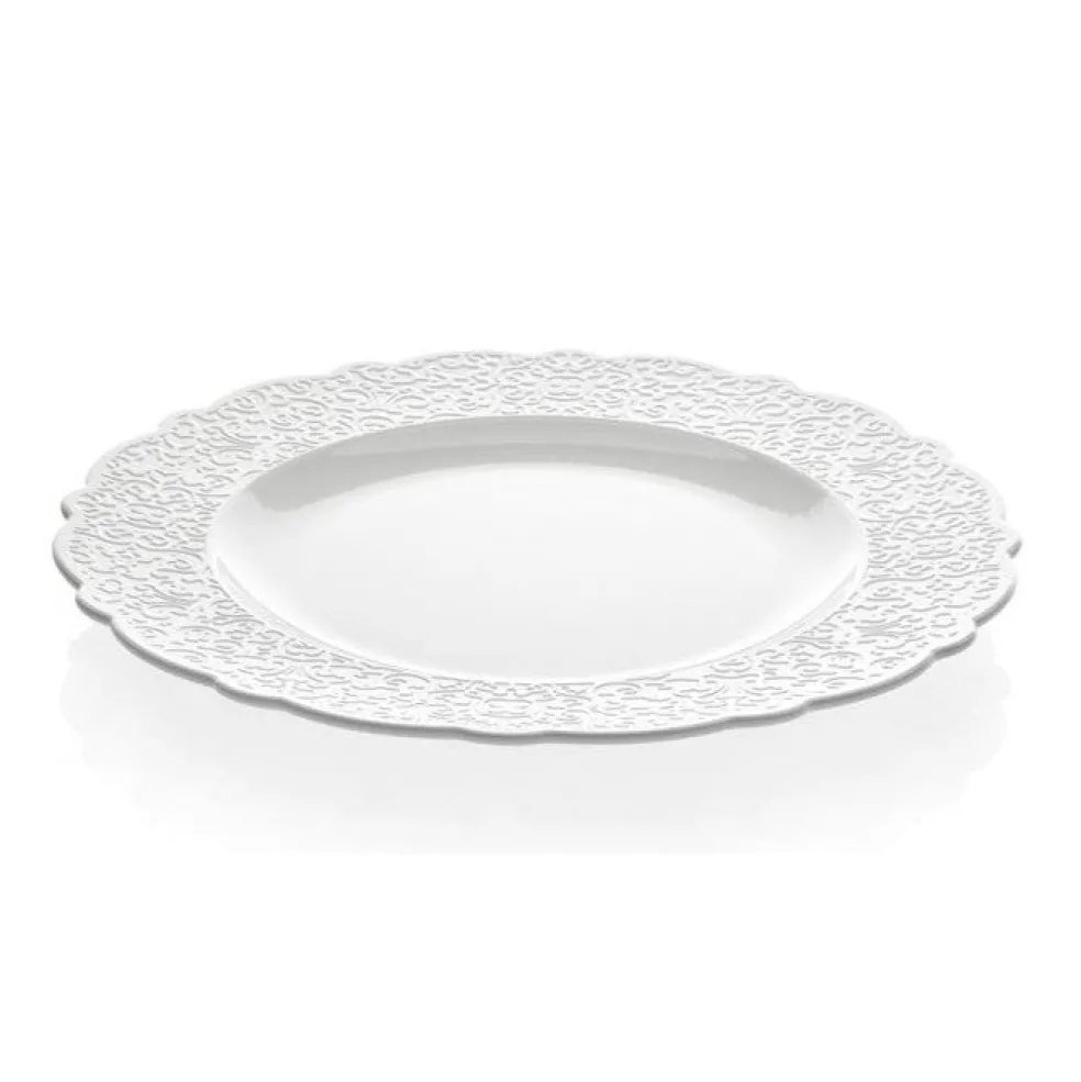 Dressed Tallrik från Alessi. Den här tallriken har en vackert mönstrad kant, och ger en elegant känsla till det dukade bordet. Den tillhör serien Dressed som har designats av Marcel Wanders, och utmärker sig med sin unika elegans och överraskande inslag. Tallriken är fin att kombinera med andra produkter från Dressed-serien.