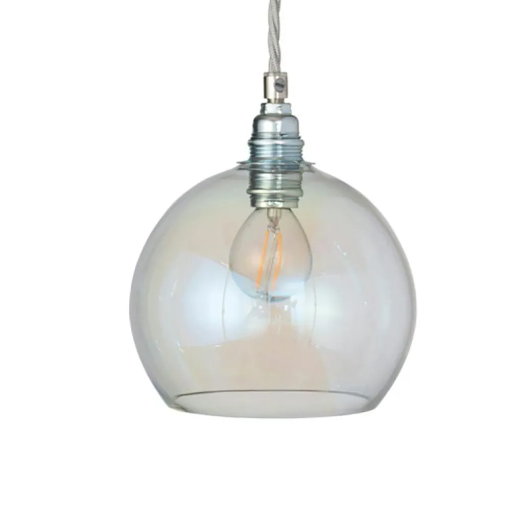 Pendelns vackra kombination av munblåst glas, metallbeslag och tvinnad textilsladd skapar tillsammans en oslagbar inredningsdetalj till ditt hem.