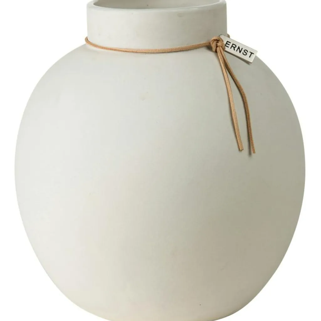 Stengodsvas från Ernst Kirchsteiger. Snittblommor skapar liv och glädje i varje hem. Den här vasen i stengods öppnar upp oändliga möjligheter att skapa vackra blomsterarrangemang. Vasen har ett läderband knutet runt sig som ger ett elegant och levande uttryck. Vasen finns i tre storlekar och fyra färger.