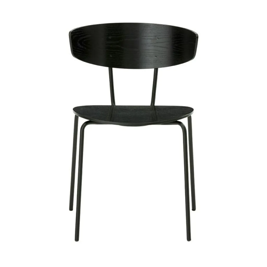 Stilren och bekväm stol från Ferm Living som passar lika bra vid matbordet som i konferensrummet. Stolen har en oval sits med kanter som sluttar uppåt på sidorna och ger en stabil sittyta, medan skivan i ryggen hålls uppe av en metallram som gör ryggdelen aningen flexibel samtidigt som den ger ordentligt och skönt stöd.