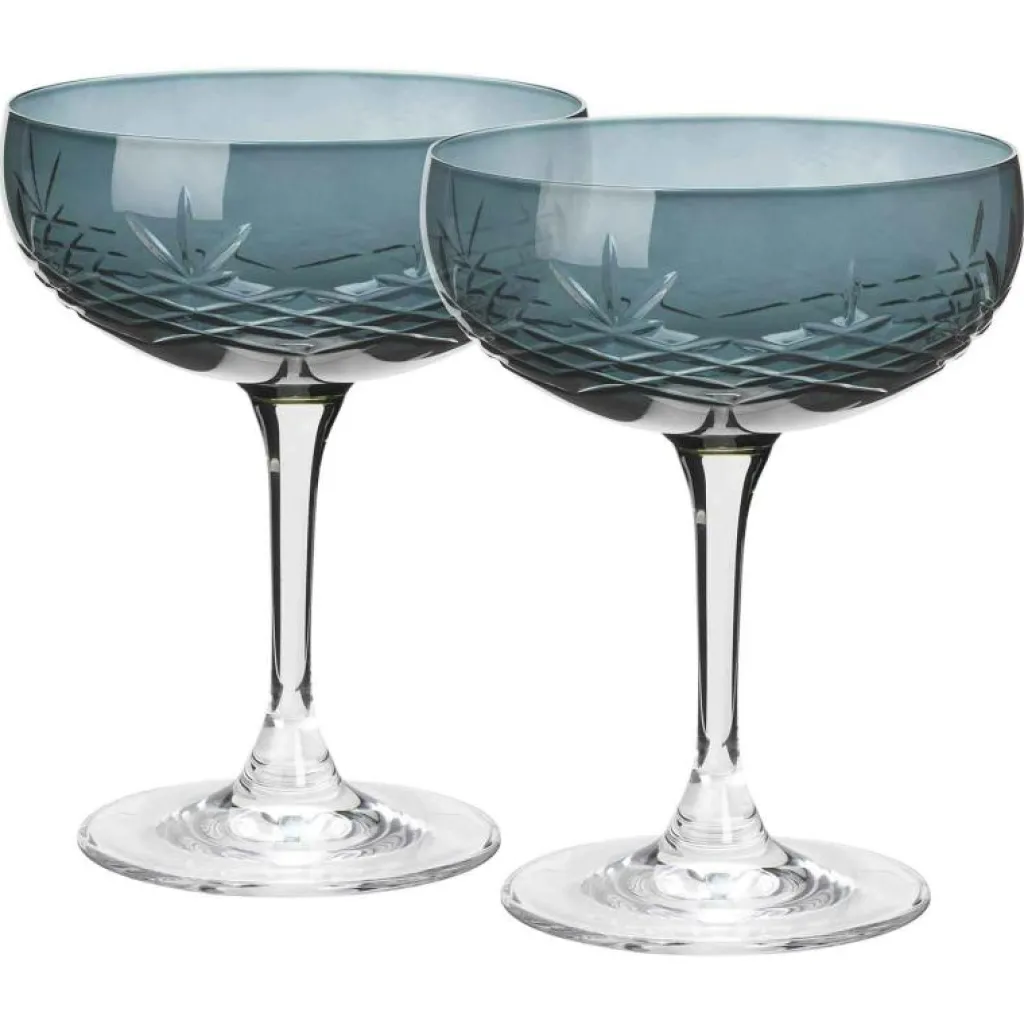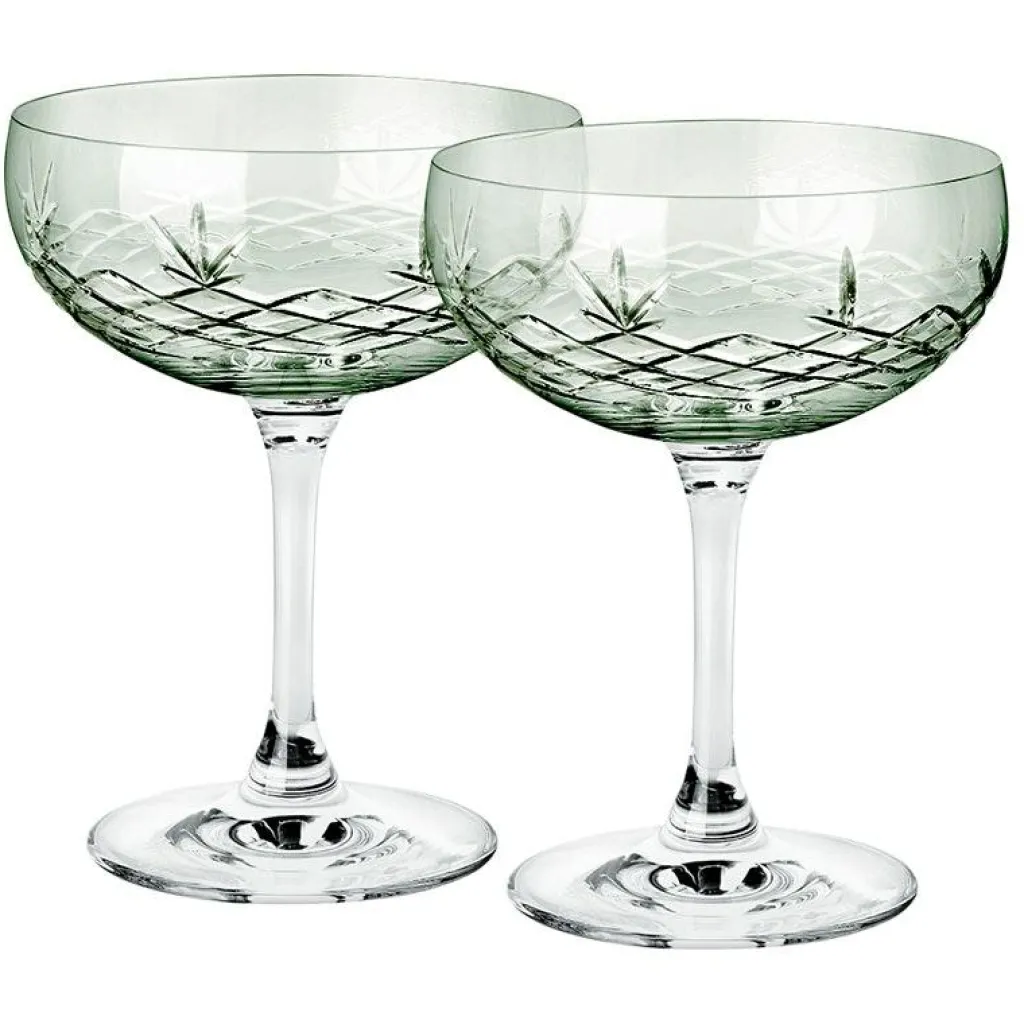 Dessa två champagnekupor tillhör serien Crispy från Frederik Bagger. Kuporna pryds av eleganta slipskär i det högkvalitativa glaset, och garanterar långvarig glans och klarhet. Använd för att servera bubbel, drinkar eller desserter.