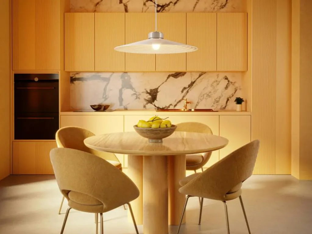 – Rund, räfflad lampskärm.