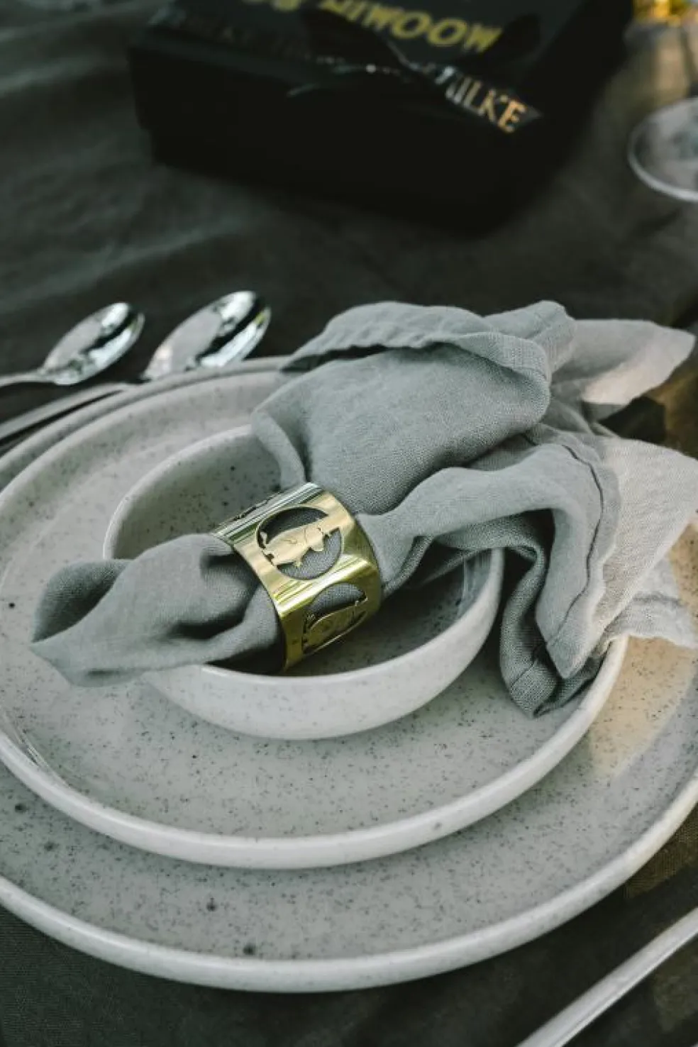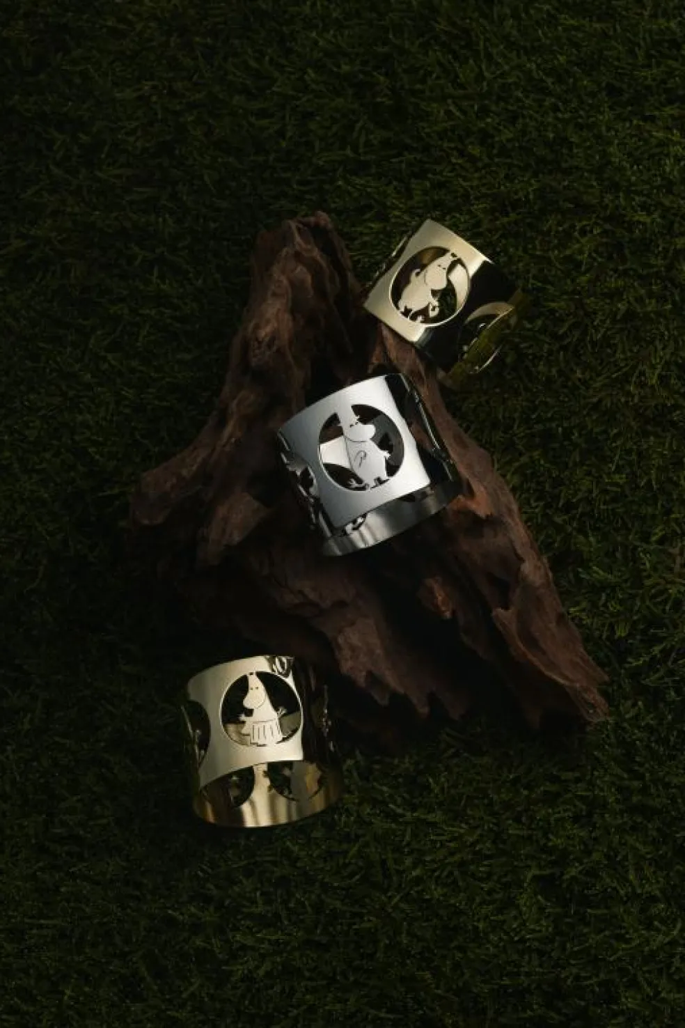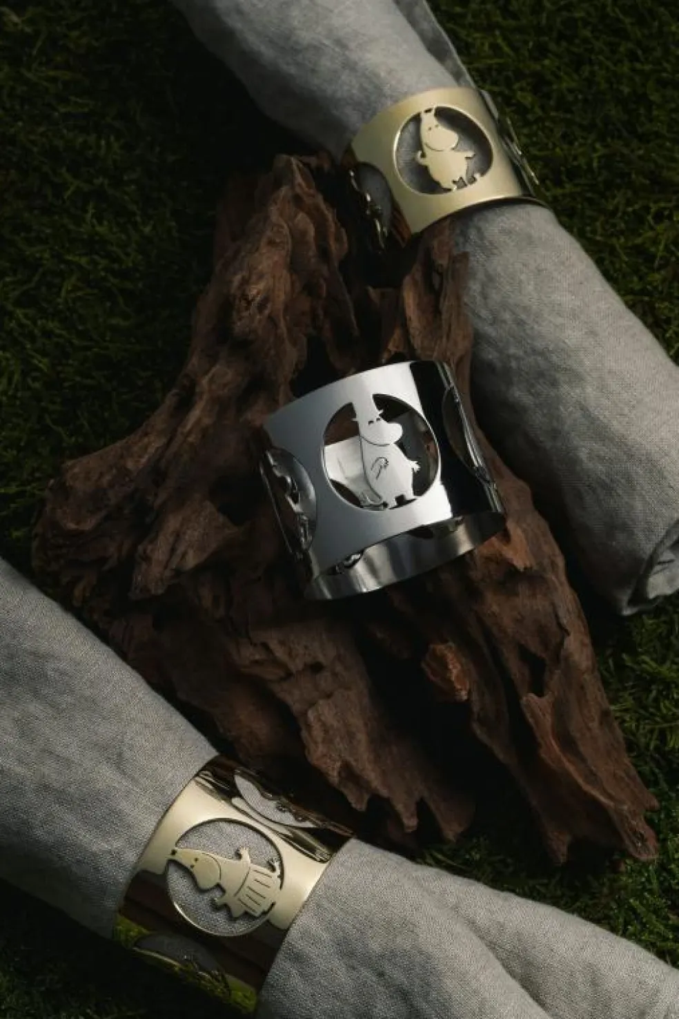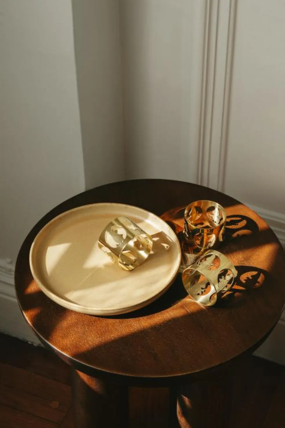 – Handgjorda servettringar i mässing.