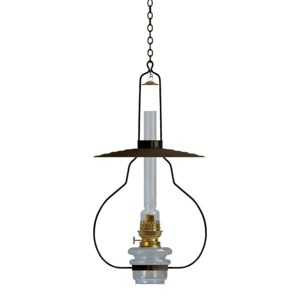 Lyckeby fotogenlampa från Karlskrona Lampfabrik. Lyckeby är kanske den mest klassiska fotogenlampan av dem alla och har varit i produktion ända sedan 1884. Taklampan monteras enkelt i taket med den 50 cm långa kättingen som medföljer. Lyckeby är tillverkad av smidesjärn med en skärm av trycksvarvad aluminium, och själva lampan är tillverkat av munblåst glas.