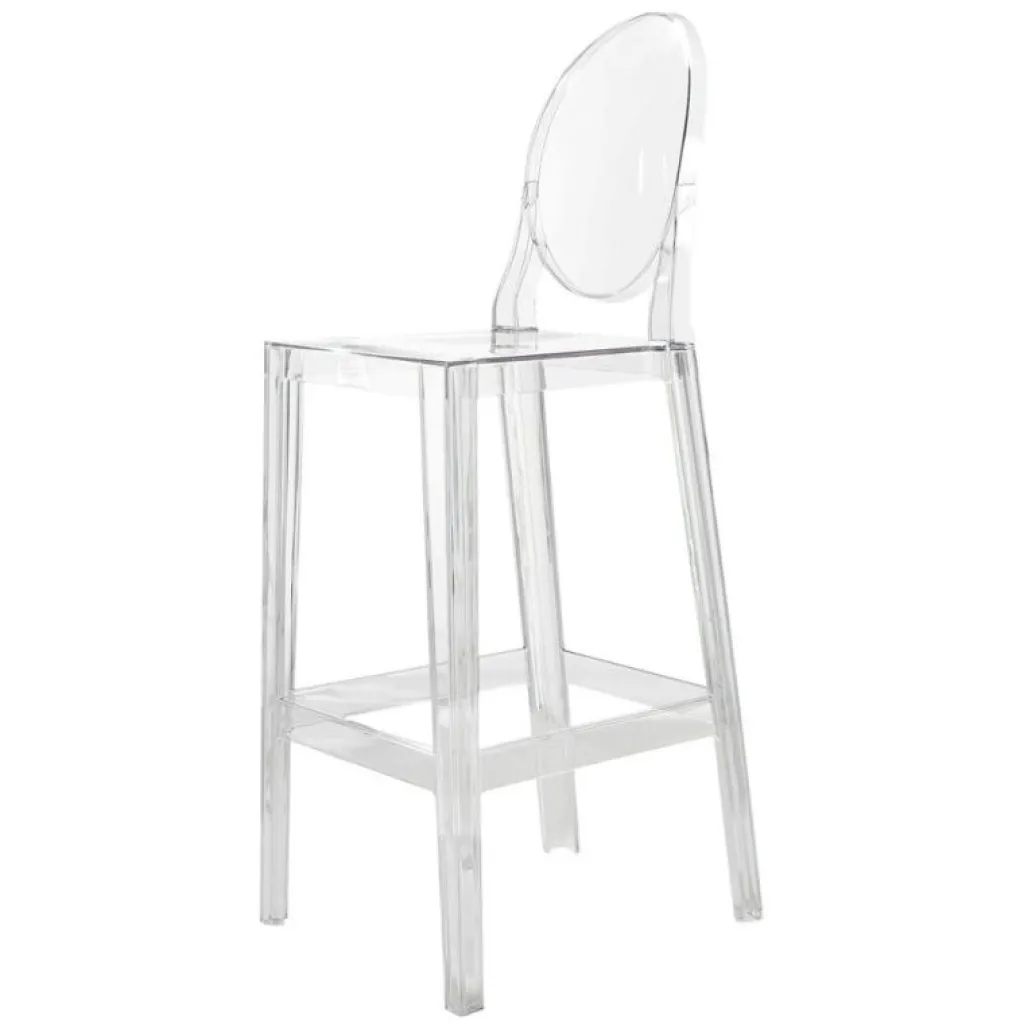 One More, Barstol formgiven av Philippe Starck för Kartell.En barstol med klassiska linjer och medaljongrygg. Barstolen är tillverkad av polykarbonat som gjutits i ett enda stycke vilket gör stolen okrossbar och tålig för såväl höga som låga temperaturer. Stolen finns tillgänglig i två sitthöjder; 65 cm som passar de flesta köksskänkar samt 75 cm som är anpassad till högre barbord. Kan användas både inomhus och utomhus.