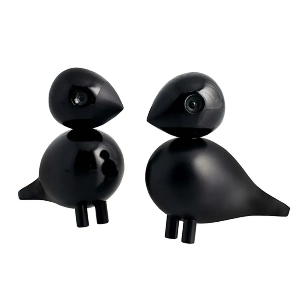 Kay Bojesen formgav sångfåglarna redan på 1950-talet, men de har först nu de har tagits till produktion. De färgsprakande sångfåglarna i familjen får nu tillökning av två söta turturduvor – Lovebirds. Fåglarna är tillverkade av bokträ och har målats i svart. Detta kärlekspar sprider kärlek och värme och är även ett bevis på utmärkt formgivning. Levereras i 2-pack.