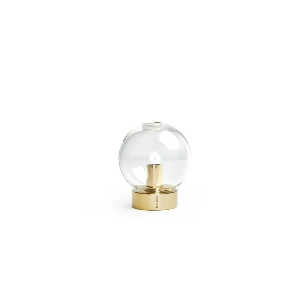Vacker liten vas i munblåst glas och mässing med inspiration från jordens omslutande och skyddande atmosfär.Tack vare glaskupolen får även tunna och sköra blomstjälkar ett naturligt stöd.