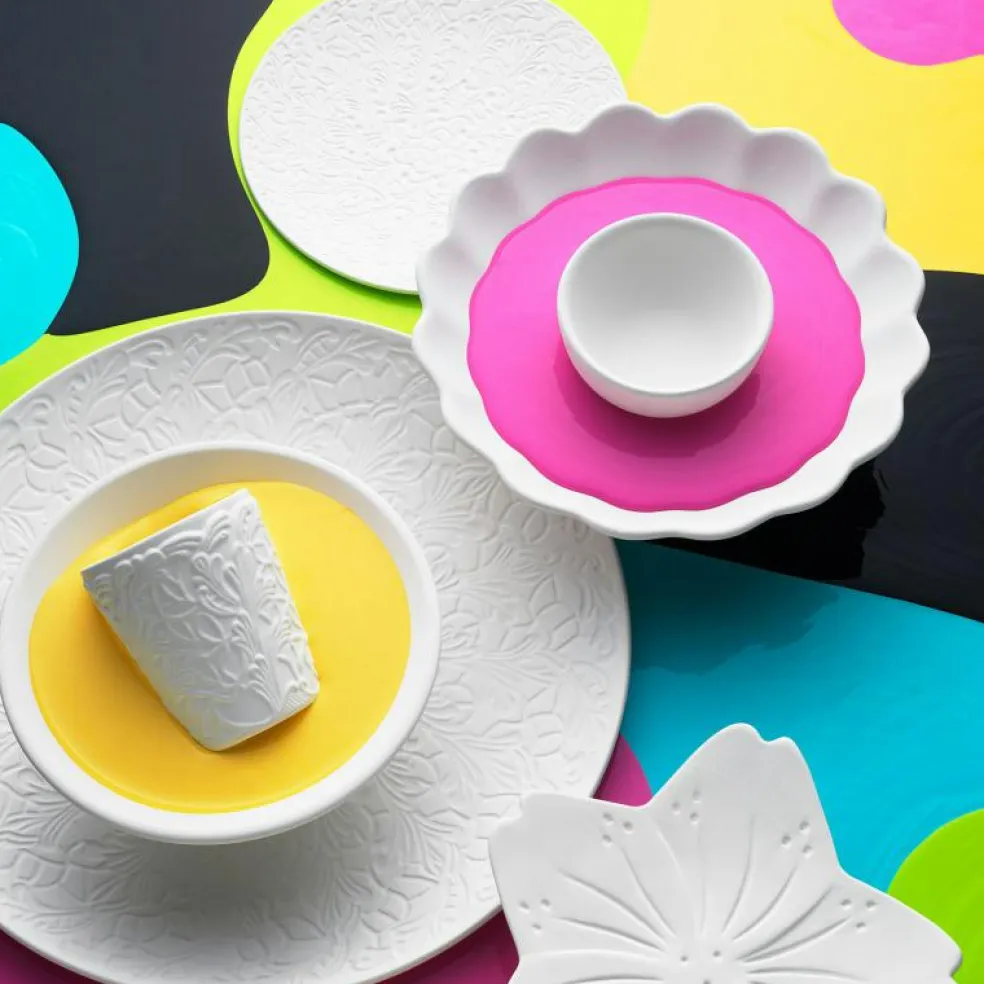 Lace Fat från Mateus. Detta är ett fint runt fat som har fått sin inspiration från modevärlden. Fatet kännetecknas av mönstret som liknar spets. Passar perfekt för servering av till exempel frukt. Fatet är handgjort och handmålat av erfarna hantverkare i Portugal, vilket gör varje fat unikt. Finns i flera härliga färger.
