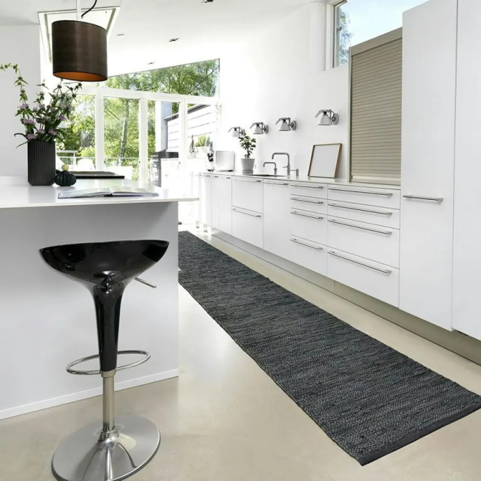- Handvävd lädermatta i mörkgrå från Rug Solid