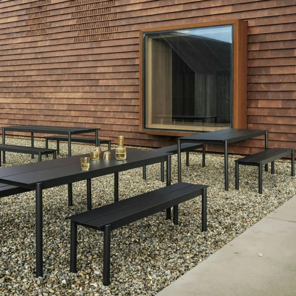 – Kombinera bänken med ett Linear bord från Muuto.