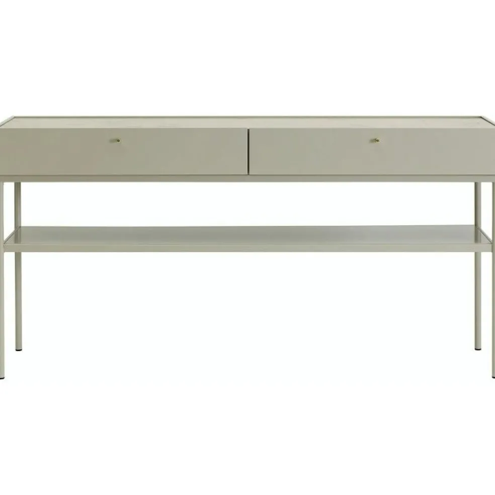 – Lådor och hylla i lackad MDF med knoppar i mässing.