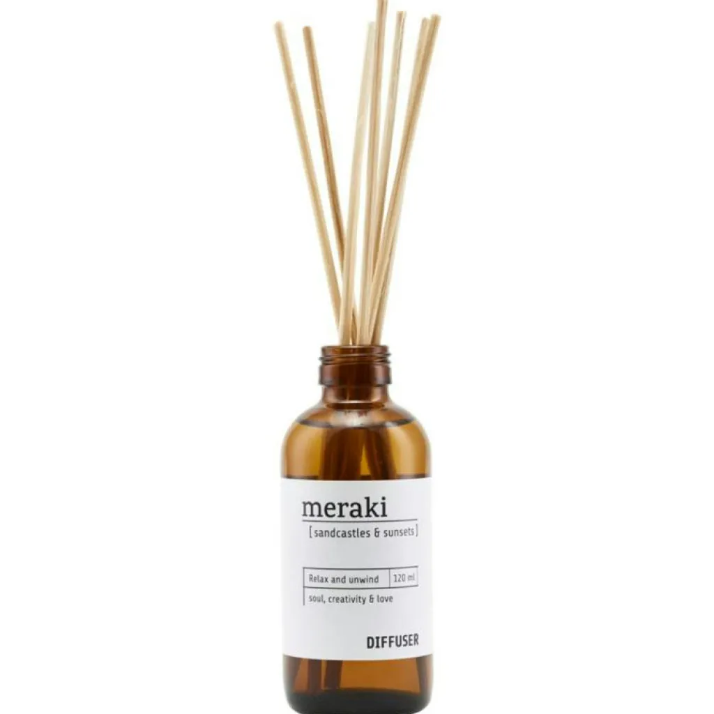 Doftpinnar från danska Meraki. Skapa en härlig atmosfär med dessa väldoftande doftpridare. Doftspridaren består av sju stycken doftpinnar som ger en mild och sensuell doft. Använd dem i badrummet, vardagsrummet eller någon annanstans där du vill ha en uppfriskad doft. Finns i tre olika dofter; nordic pine, scandinavian garden och sandcastles & sunsets.