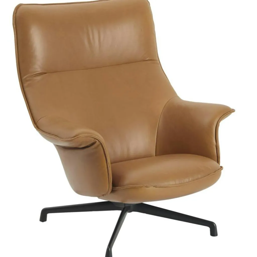 Muuto Fåtöljer-Doze Fåtölj Hög Rygg Med Snurrunderrede, Refine Läder Konjak /