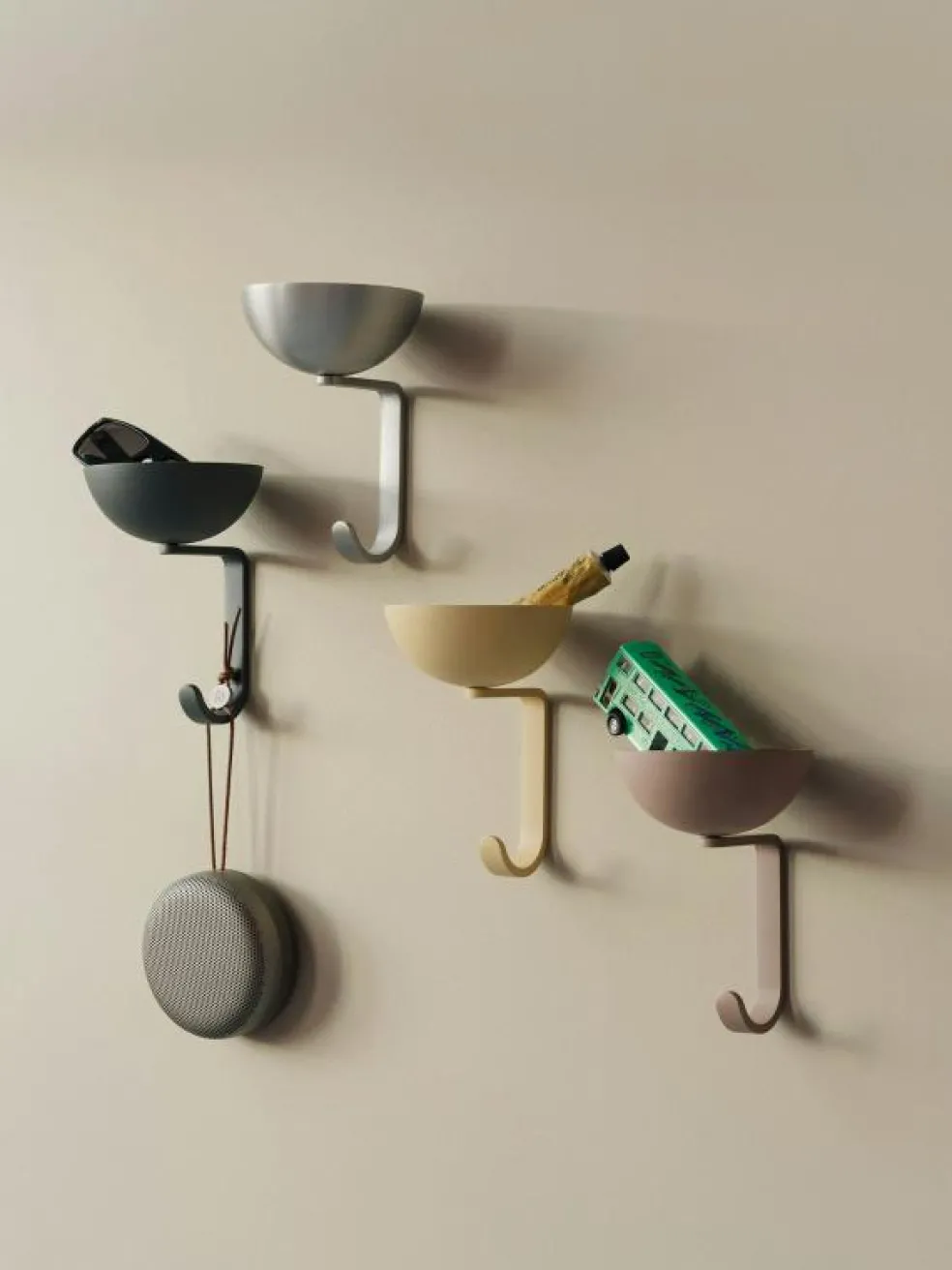 – Väggkroken kommer i olika färger.