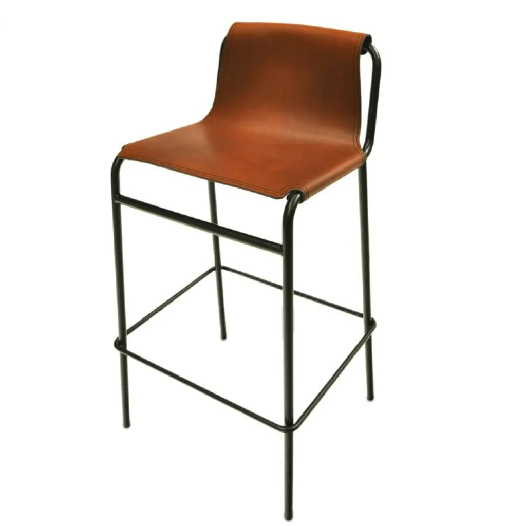 En stilren barstol med stålstativ och sits av 100% vegetabiliskt garvat läder, med en tjocklek på minst 3 mm. Finns med benställning i pulverlackerat eller rostfritt stål.