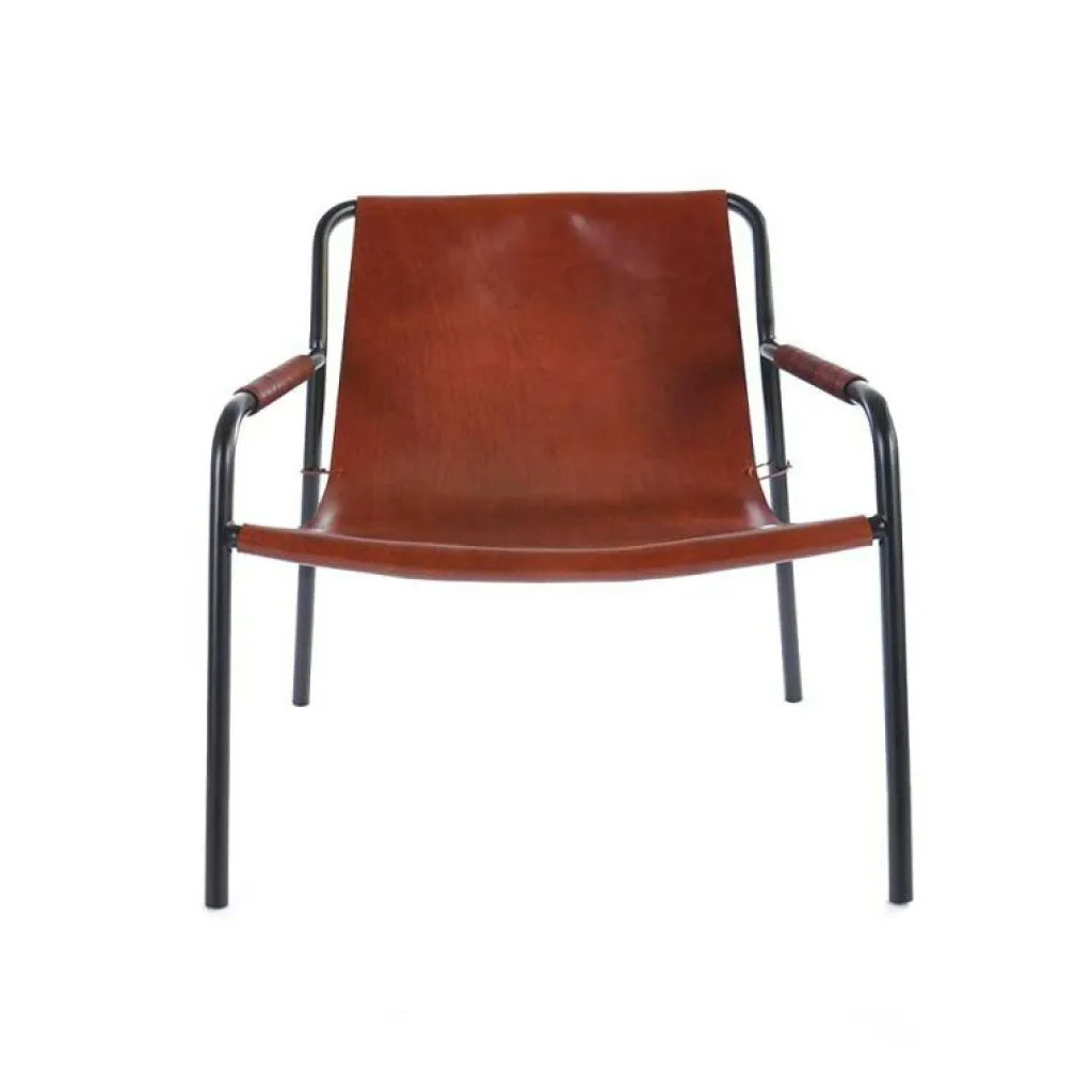En stilren stol med stålstativ och sits av 100% vegetabiliskt garvat läder, med en tjocklek på minst 4 mm. Finns med benställning i pulverlackerat eller rostfritt stål.