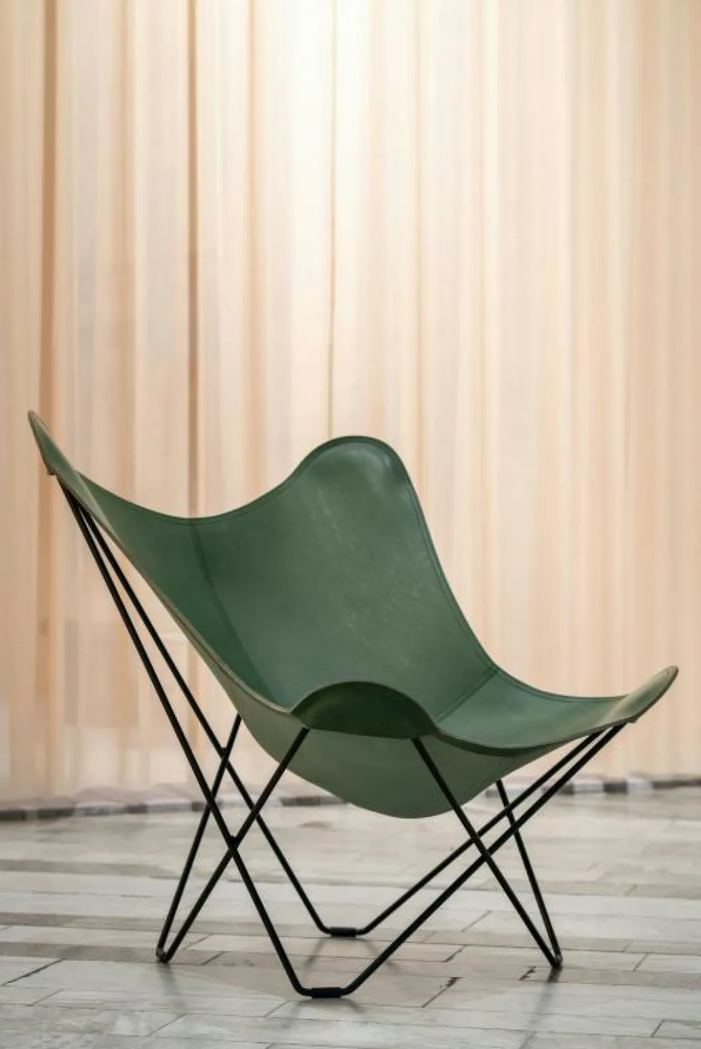 Pampa Mariposa Butterfly Chair är en riktig klassiker i ny tappning. Den är mycket större än originalet vilket gör den ännu skönare att sitta i. Lädret kommer från Italien och väljs ut mycket noggrant. Den tillverkas i Småland med stor hantverksskicklighet och miljötänk. Underredet är gjort av massivt svenskt extra hårt stål. Lädret är ett naturmaterial vilket gör att varje stol får ett unikt utséende och om du tar hand om det kommer stolen att hålla i generationer tack vare den underbara kvaliteten. Denna designikon används flitigt på kontor, hotell, konstutställningar, inredningstidningar och i privata hem förstås. Den finns i flera olika läderfärger samt med svart eller kromat underrede. I samma modell finns också Iceland Mariposa som är mjukt och gosigt lammskinn. Till dessa fåtöljer finns även en pall i samma utföranden.