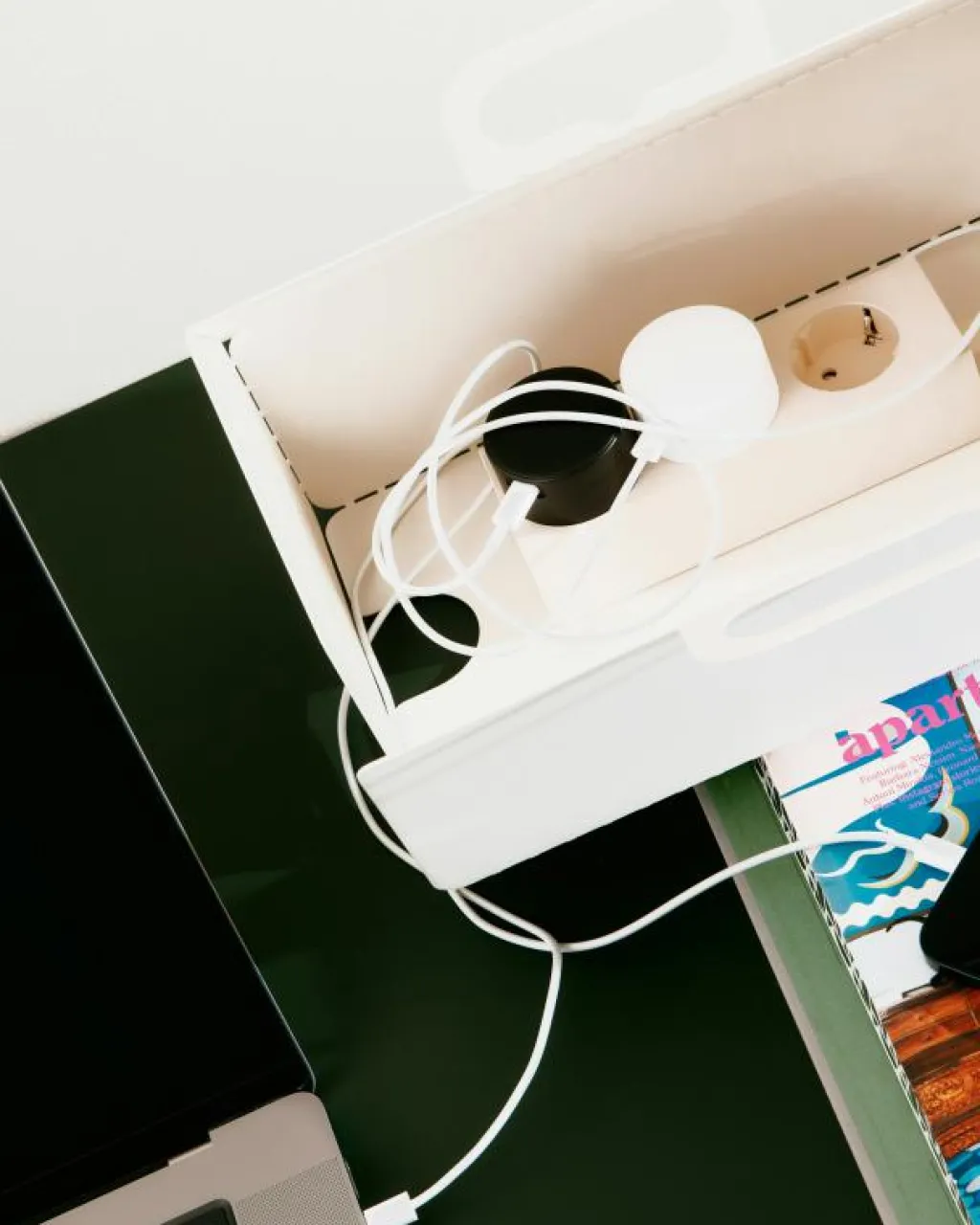 – Placeras enkelt på TV-stativet eller någon annan magnetisk yta.