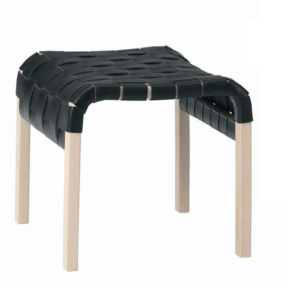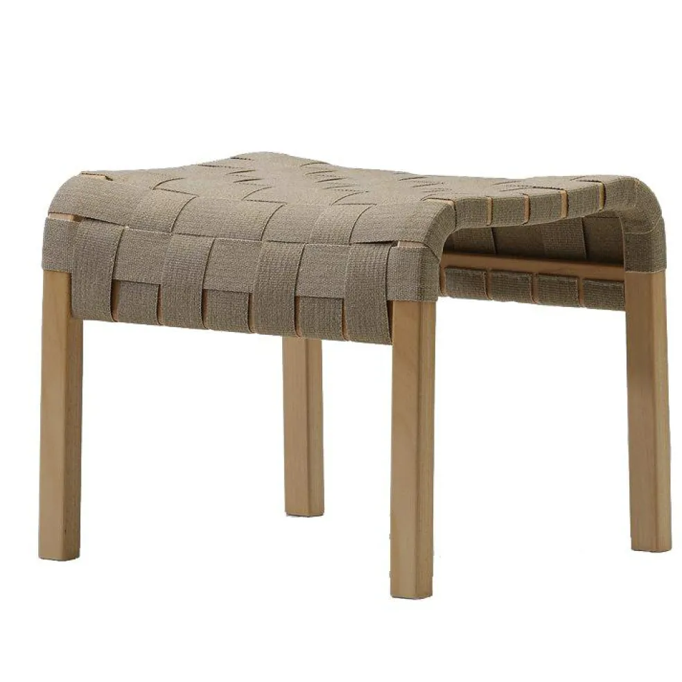 Tillhörande fotpall till fåtöljen Primo från Swedese. En fotpall med hållbar design, kvalitet och funktion tillverkad av bok eller ek med sits av flätad sadelgjord.
