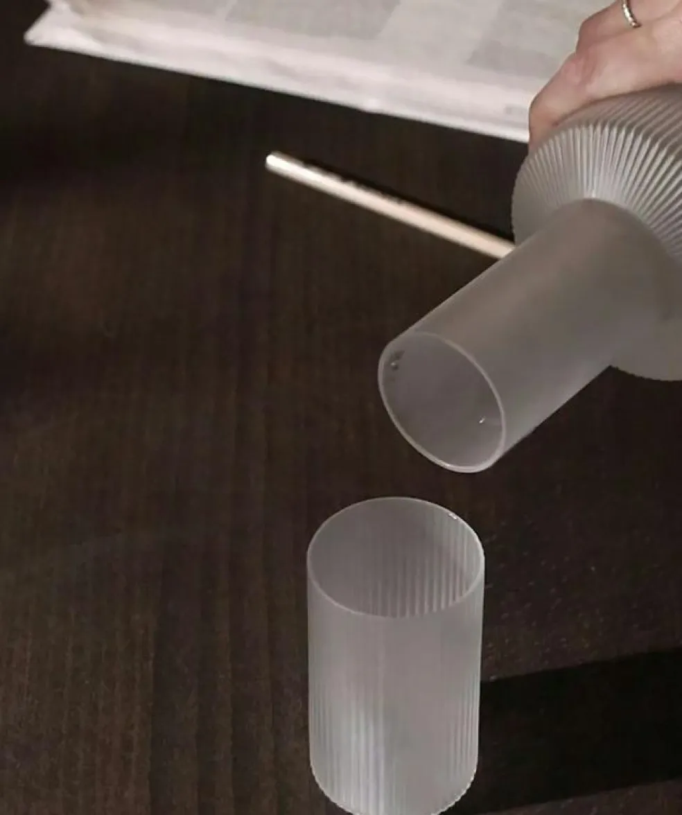 – Kombinera dricksglaset med en Ripple karaff från Ferm Living.