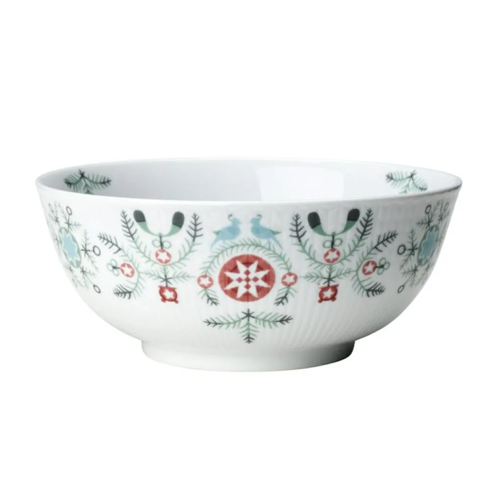 Den här skålen är en vintrig tolkning på den populära serien Swedish Grace. Den är inspirerad av barndomens vintrar med strama granbarr, mistlar och snöflingor, vilket gör den till ett givet inslag på julbordet. Är designad av Katarina Brieditis.