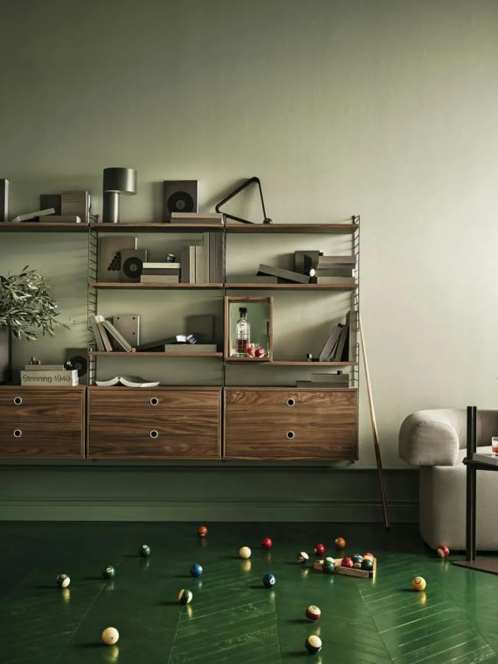 – Kombinera snapsskåpet med hyllplan från String.