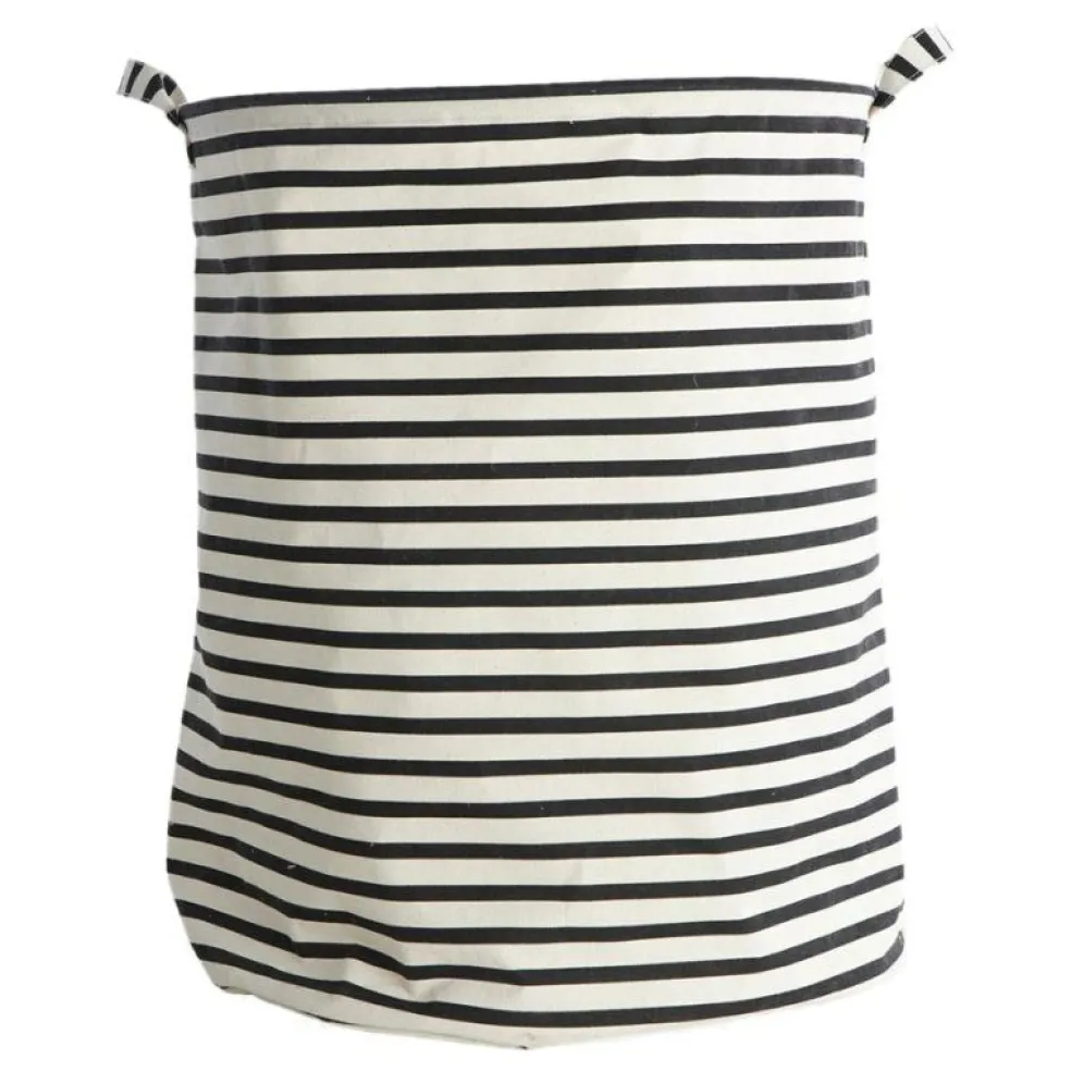 Samla smutstvätten med stil i denna fina och rymliga tvättkorg.Korgen har två handtag som gör det smidigt att bära med sig tvätten. Tvättkorgen har en utsida i svartvitt canvastyg som består av 40,4 % polyester, 37,5% bomull samt 22,1% rayon. Insidan är skyddad med plast, vilket gör att tyget inte drar till sig eventuell smuts, fläckar, vätskor och dåliga odörer som kan tänkas komma från smutstvätten.