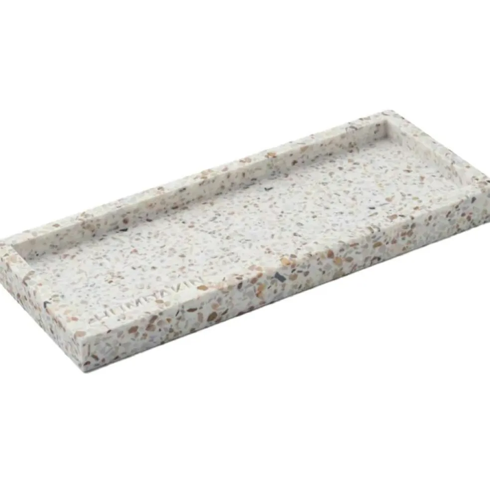 Med sin minimalistiska estetik passar Terrazzo Bricka i olika inredningsstilar – från modernt till skandinaviskt. Det är detaljerna som räknas och denna bricka gör varje detalj i ditt hem mer harmonisk och genomtänkt. Varje Terrazzo Bricka är unik, med naturliga mönster och färgskiftningar som skapar en personlig touch. Föreställ dig känslan av att arrangera dina favoritparfymer på denna stilrena yta, eller att servera morgonkaffet med en förhöjd känsla av lyx.