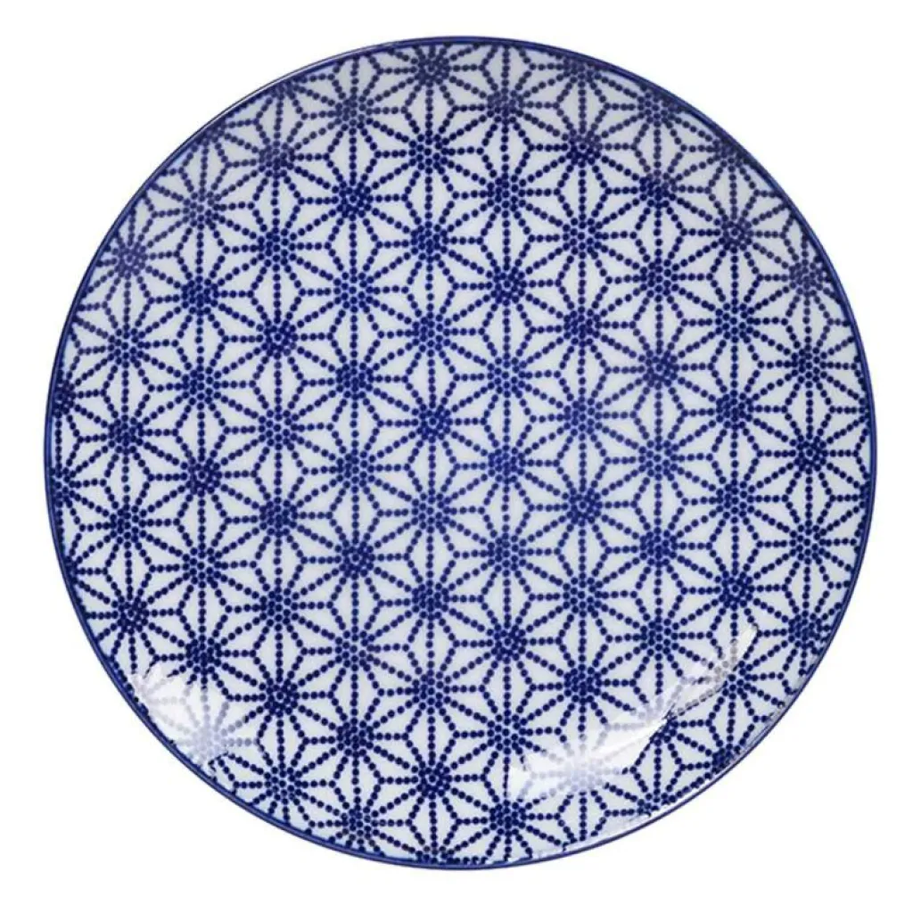 – Blått, geometriskt mönster.