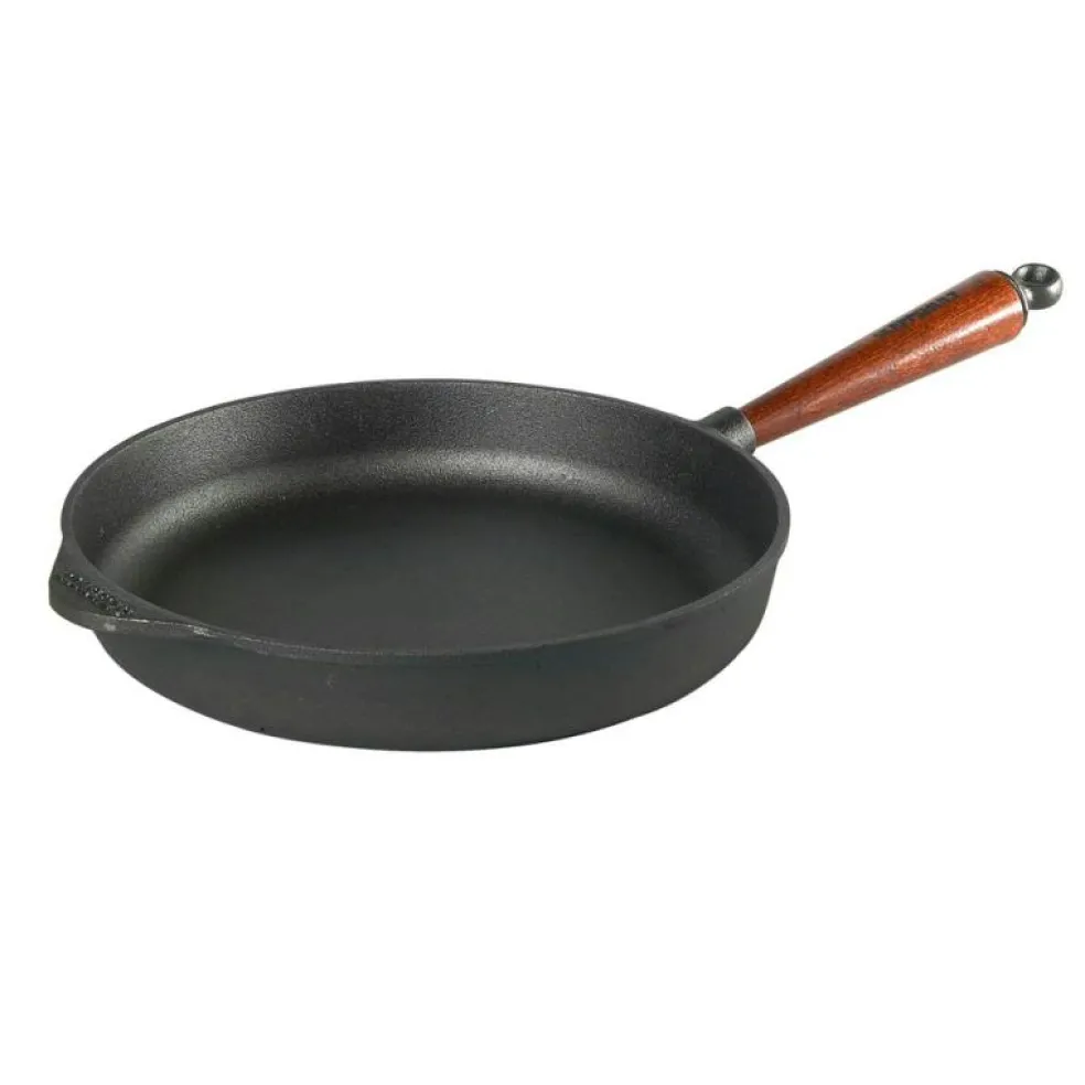 Svenskt hantverk i helt naturliga material. Den här traktörpannan med ett handtag i bokträ från Skeppshult är tillverkad av gjutjärn med en 5 mm tjock botten med väldigt god värmefördelning som går att använda på alla typer av värmekällor, inklusive induktion. Pannan är inbränd med ekologisk svensk rapsolja från Österlen som ger en naturligt non-stick-yta. Traktörpannan kräver minimalt underhåll och blir bara bättre med tiden. Tål alla köksredskap i olika material, även metall.