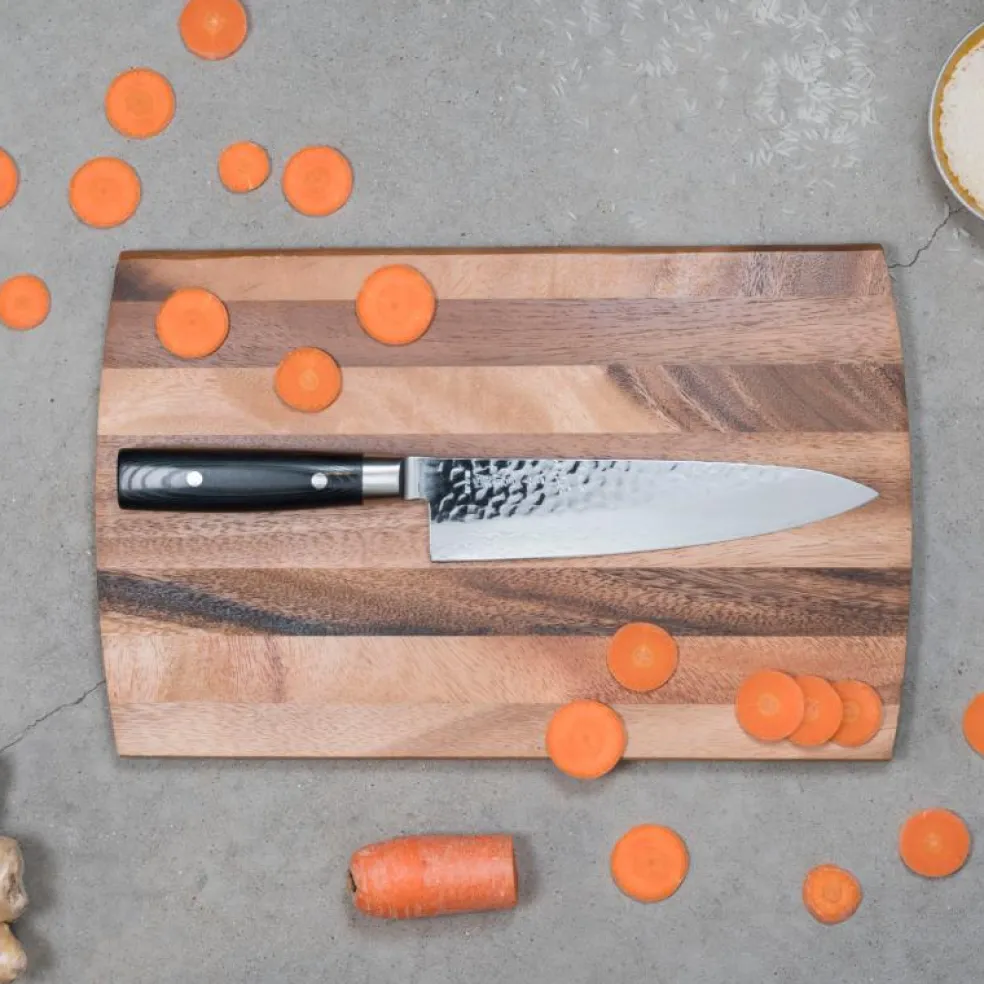 Yaxell Zen är en mångfaldig testvinnare tack vare dess perfekta balans och otroliga skärpa.Kockkniven är tillverkad av kraftigt rostfritt stål och handtag av polerat svart Mikarta med två kraftiga nitar.